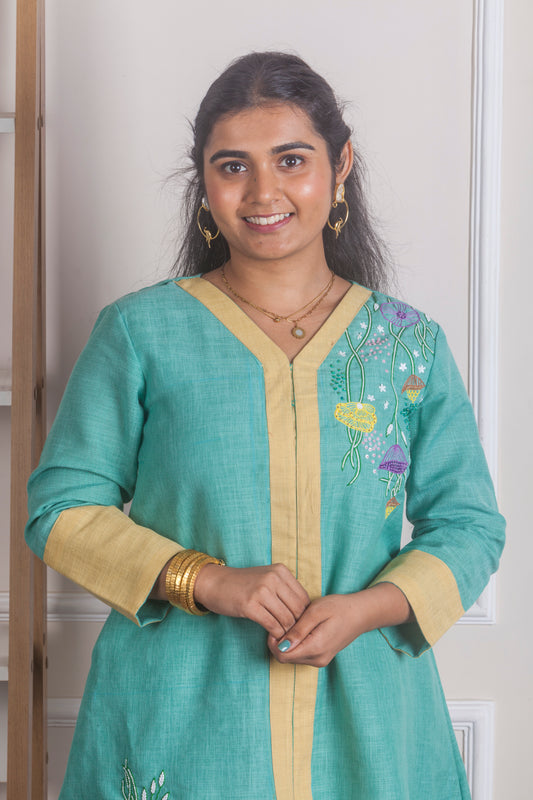 SAVE 15%Aqua Green Embroidered Co-ord Set